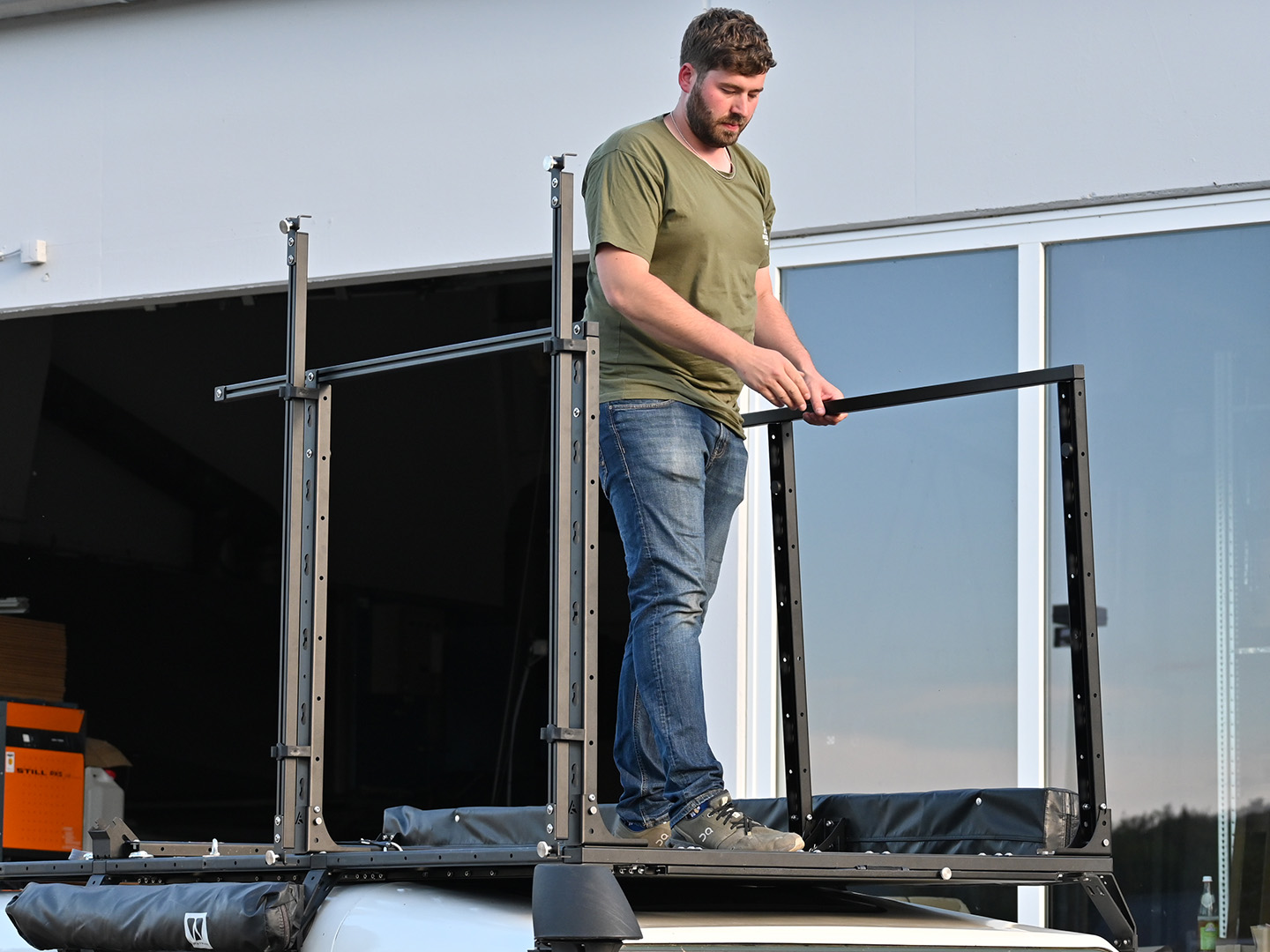Flexibel einsetzbar, als Absturzsicherung für Fotografen, als Arbeitsplattform auf dem Kastenwagen eines Handwerkers oder dem Reisemobil einer Familie. Dieses in wenigen Handgriffen aufklappbare Geländer ist für alle ein klares plus an Sicherheit.