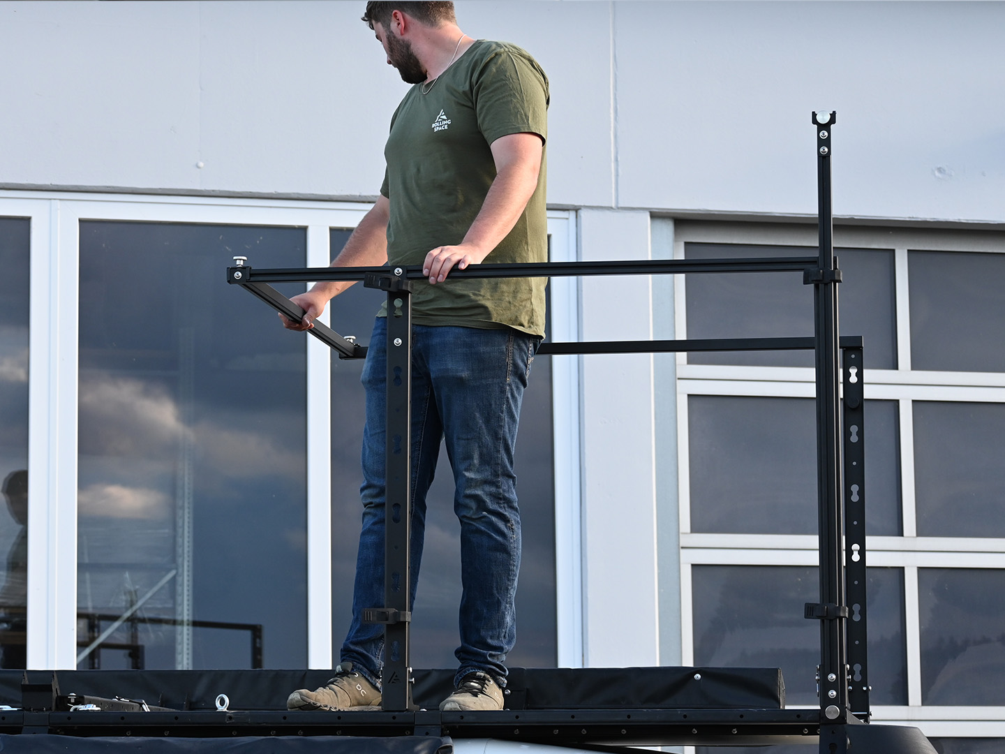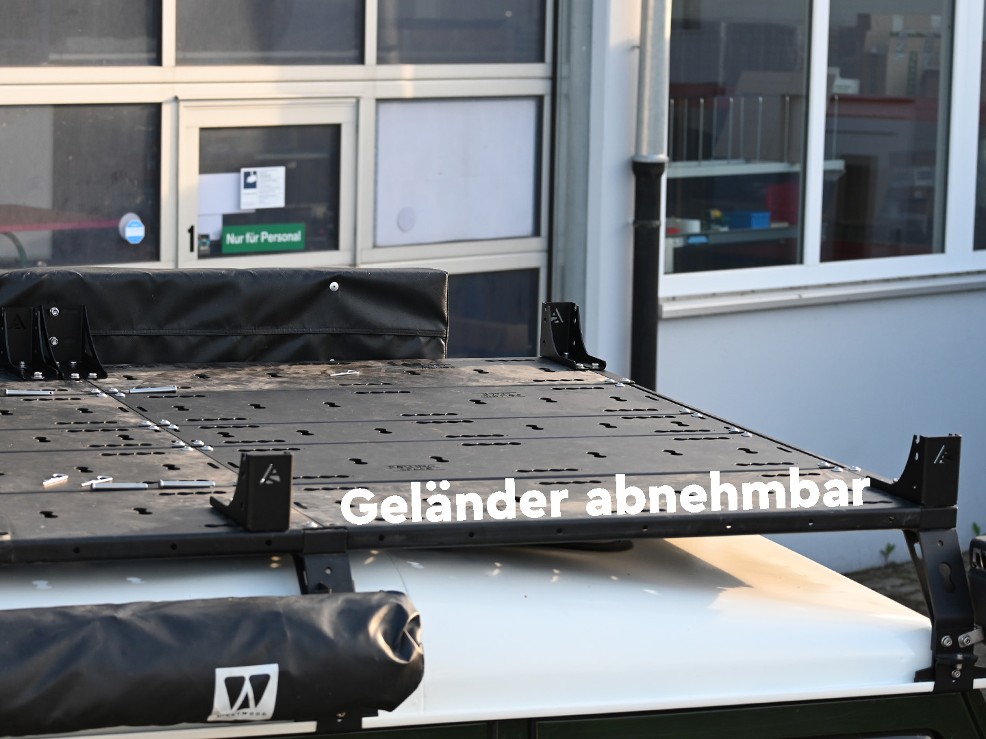 - Vollständig abnehmbares Geländer: Das Geländer kann komplett entfernt werden, wenn es nicht benötigt wird, und wiegt dabei nur 14 kg – maximale Flexibilität garantiert!
