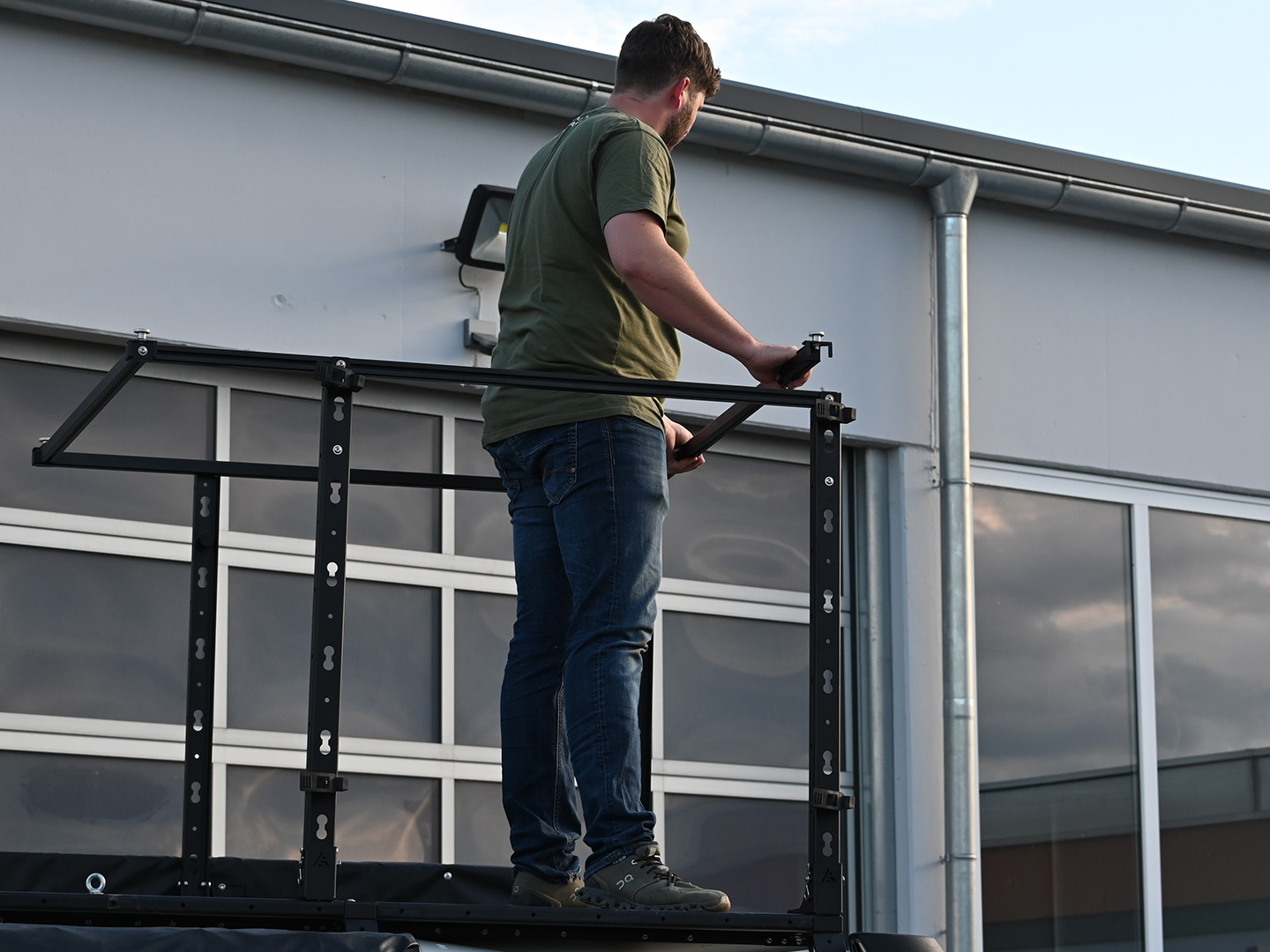 Ursprünglich als mobile Jagdkanzel konzipiert, bietet der SpaceGuard auch als Absturzsicherung vielseitige Einsatzmöglichkeiten. Ob auf der Dachterrasse eines Reisemobils, auf Kofferaufbauten von Reise-LKWs, als mobile Arbeitsbühne auf Kastenwägen, Anhängern oder anderen Flächen mit Absturzgefahr – der SpaceGuard schützt dich sicher und zuverlässig.