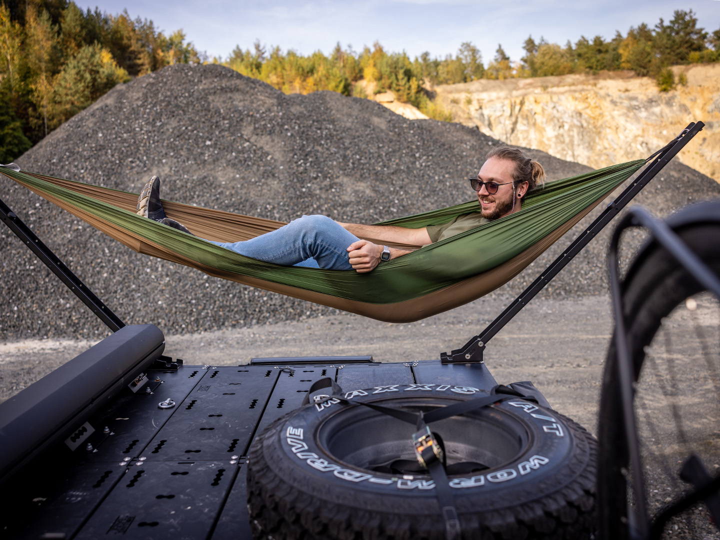 Eine breite Auswahl an Zubehör, wie Hängemattenhalter, spezielle Befestigungen für Sportausrüstung, Markisenhalter, Solar und Stauraumlösungen erweitert die Funktionalität deines Dachträgers.