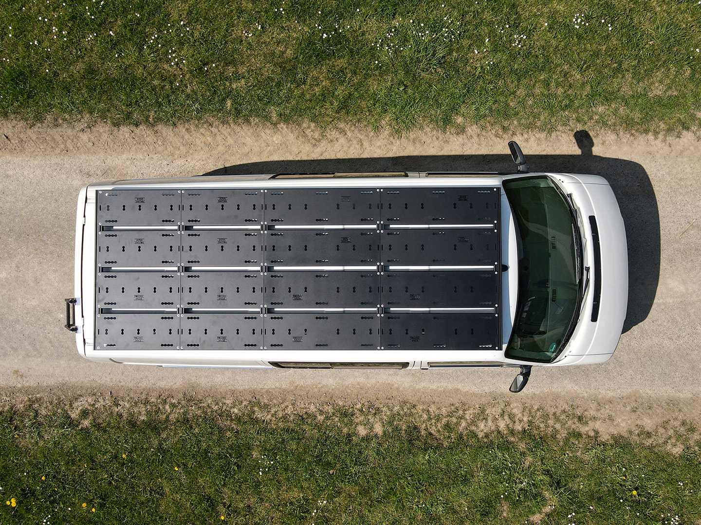 Fahrzeugspezifische Halterung sowie alle Schrauben und Nutensteine aus Edelstahl. Querträger sowie Modulplatten aus hochfestem Aluminium.