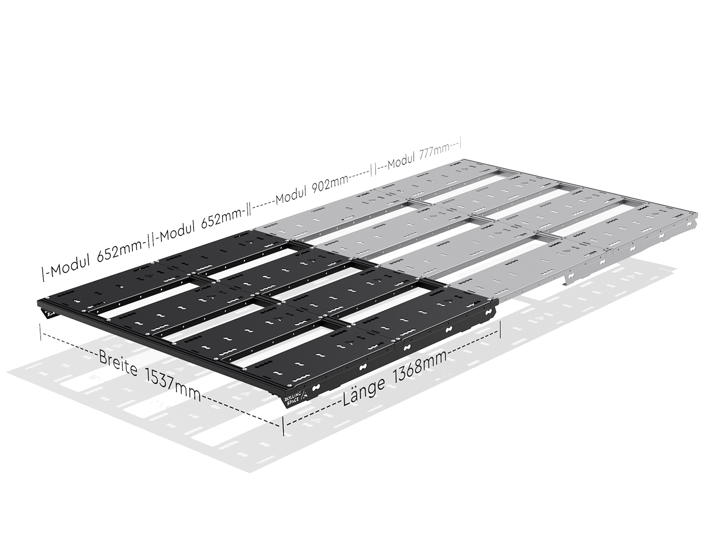 Das SpaceRack ist dafür konzipiert, bis zu 350 kg zu tragen und ist vollständig begehbar. Du kannst also zusammen mit deinen Liebsten den Sonnenuntergang darauf genießen. Trotz seiner soliden Konstruktion ist das Gewicht des Systems durch die spezielle Leichtbauweise sehr gering, was die Fahrdynamik positiv beeinflusst.