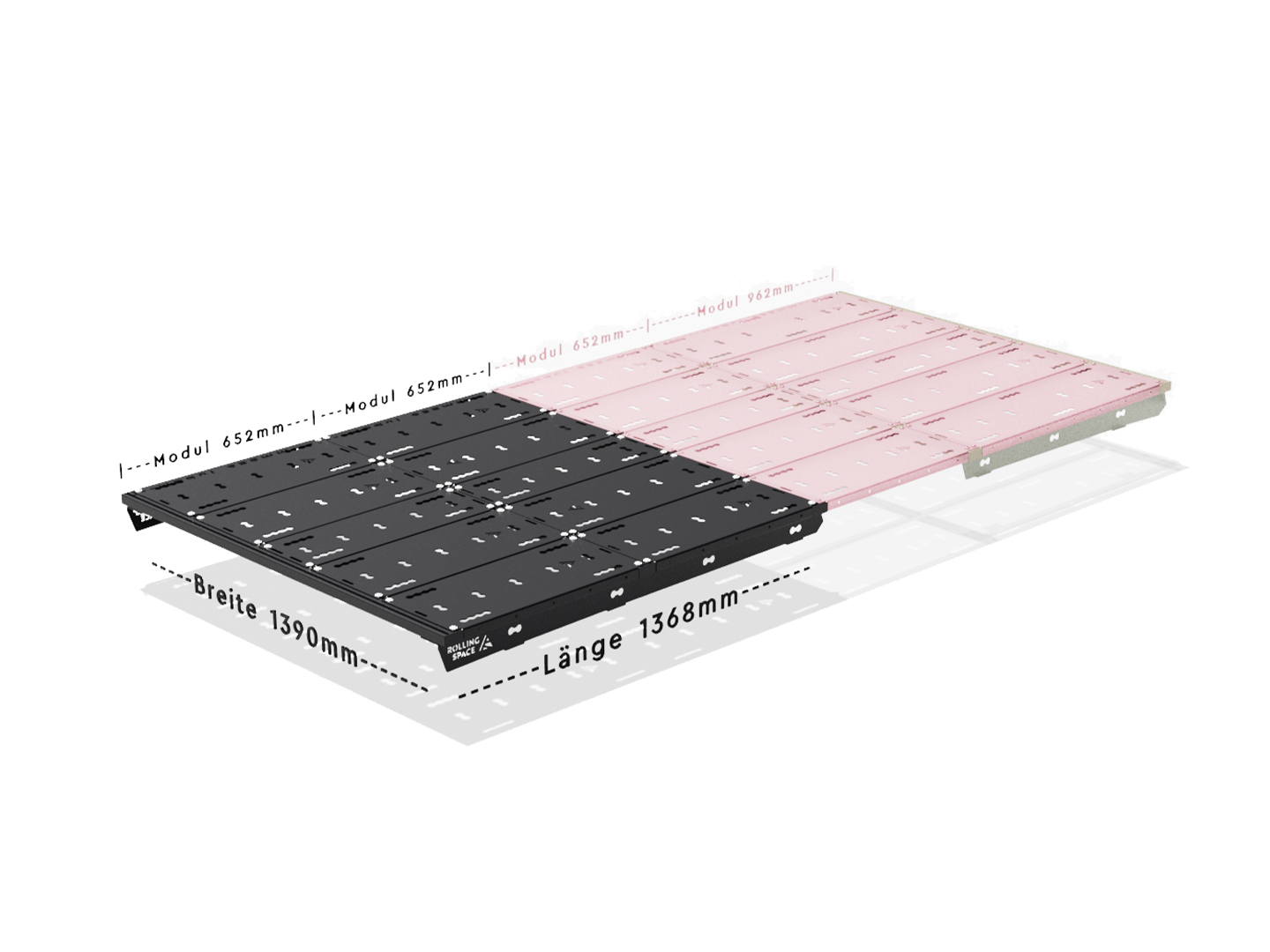 Das SpaceRack ist dafür konzipiert, bis zu 350 kg zu tragen und ist vollständig begehbar. Trotz seiner soliden Konstruktion ist das Gewicht des Systems durch die spezielle Leichtbauweise sehr gering, was die Fahrdynamik positiv beeinflusst.