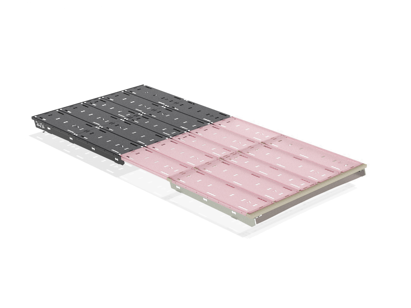 Fahrzeugspezifische Halterung sowie alle Schrauben und Nutensteine aus Edelstahl. Querträger sowie Modulplatten aus hochfestem Aluminium.