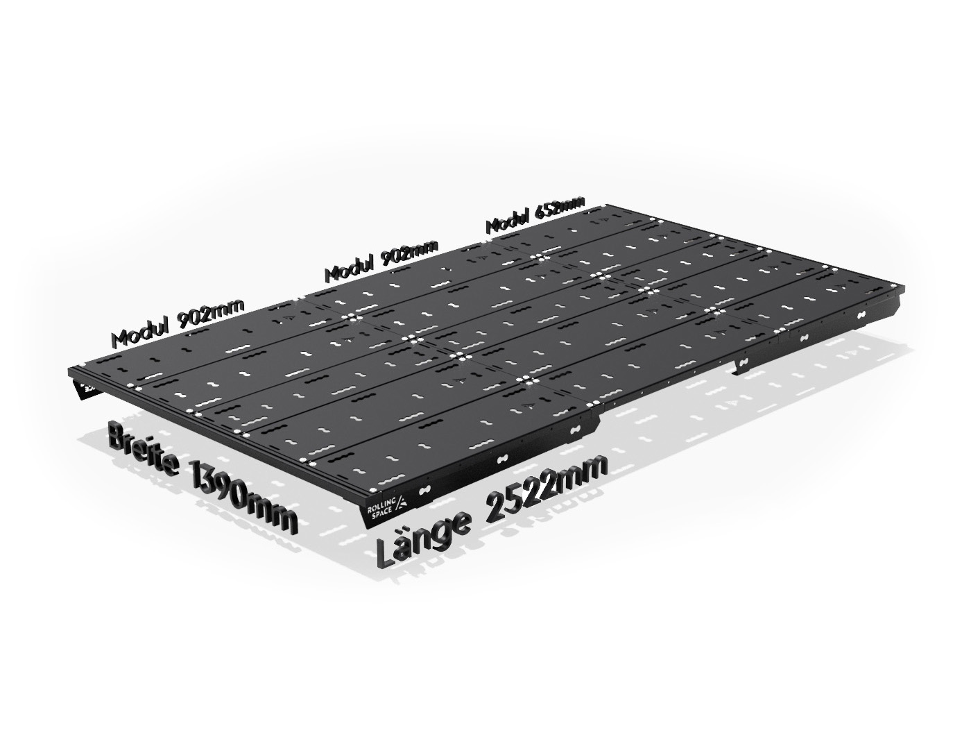 Das SpaceRack ist dafür konzipiert, bis zu 350 kg zu tragen und ist vollständig begehbar. Trotz seiner soliden Konstruktion ist das Gewicht des Systems durch die spezielle Leichtbauweise sehr gering, was die Fahrdynamik positiv beeinflusst.