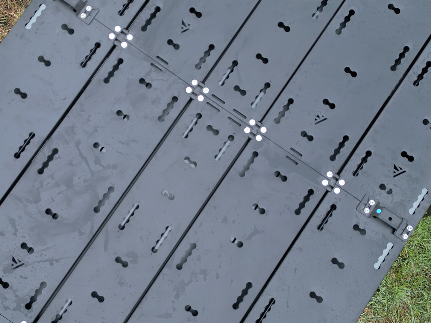 Fahrzeugspezifische Halterung sowie alle Schrauben und Nutensteine aus Edelstahl. Querträger sowie Modulplatten aus hochfestem Aluminium.