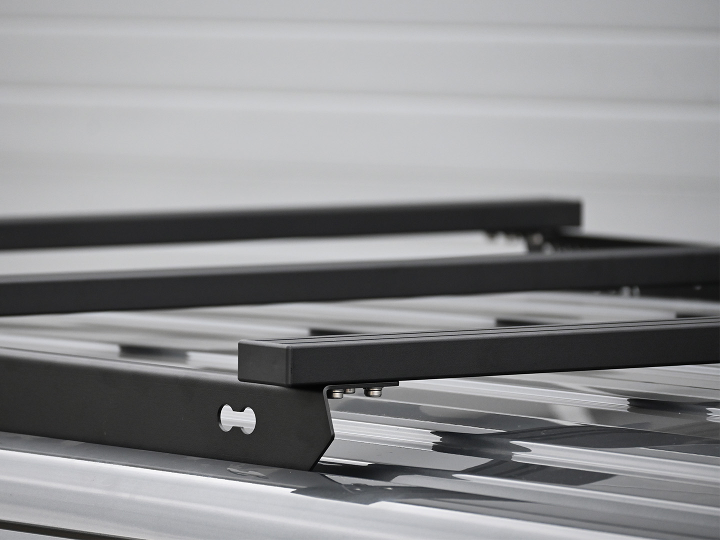 Die Pro Ausbaustufe des Dachträgersystems bietet eine vollständig geschlossene Fläche, die Sicherheit beim Bewegen und Verzurren der Ladung garantiert. Diese Variante bietet zusätzlich eine höhere Anzahl an Verzurrpunkten im Vergleich zur gewichtsoptimierten jedoch ebenfalls begehbaren Advanced Variante. Für einfache Bedürfnisse ist unsere Basic Variante ideal, besonders wenn du nur Dachzelte, Markisen oder längere Ladungsgegenstände sicher befestigen möchtest. Ein weiterer Vorteil: Die Basic-Variante lässt sich problemlos auf die Advanced- oder Pro-Version upgraden, um noch mehr Möglichkeiten zu nutzen.