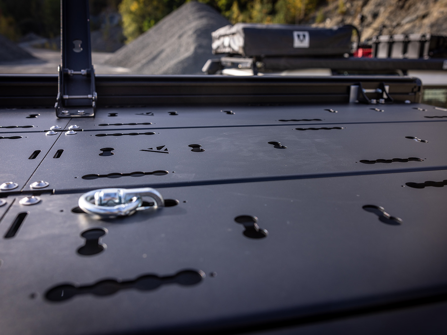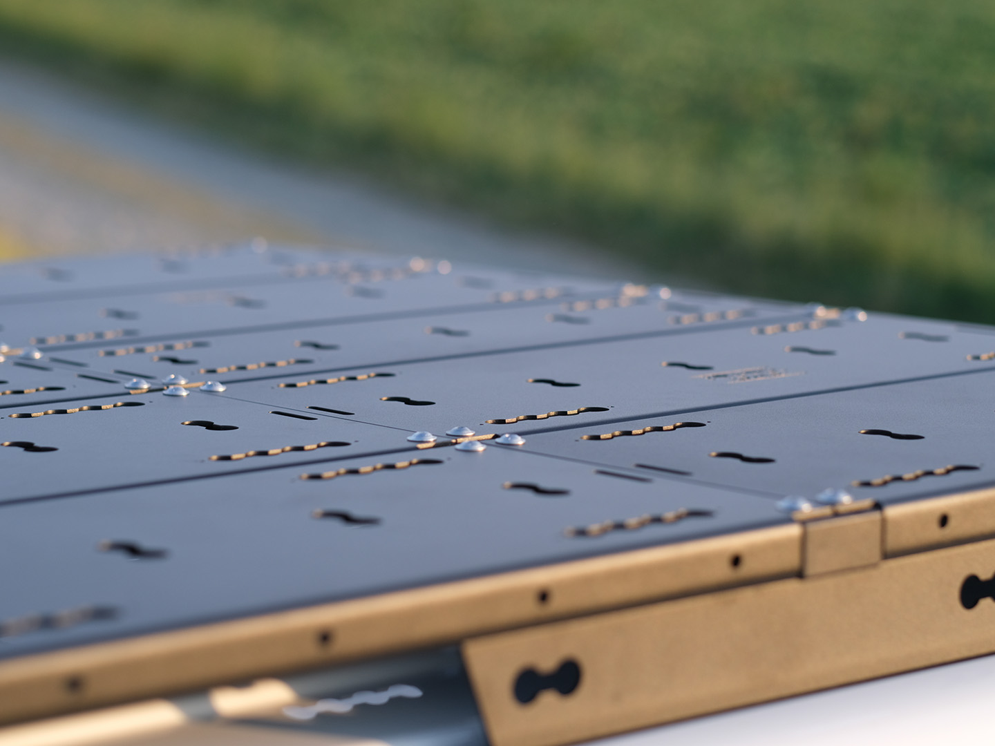 Die Pro Ausbaustufe des Dachträgersystems bietet eine vollständig geschlossene Fläche, die Sicherheit beim Bewegen und Verzurren der Ladung garantiert. Diese Variante bietet zusätzlich eine höhere Anzahl an Verzurrpunkten im Vergleich zur gewichtsoptimierten jedoch ebenfalls begehbaren Advanced Variante. Für einfache Bedürfnisse ist unsere Basic Variante ideal, besonders wenn du nur Dachzelte, Markisen oder längere Ladungsgegenstände sicher befestigen möchtest. Ein weiterer Vorteil: Die Basic-Variante lässt sich problemlos auf die Advanced- oder Pro-Version upgraden, um noch mehr Möglichkeiten zu nutzen.