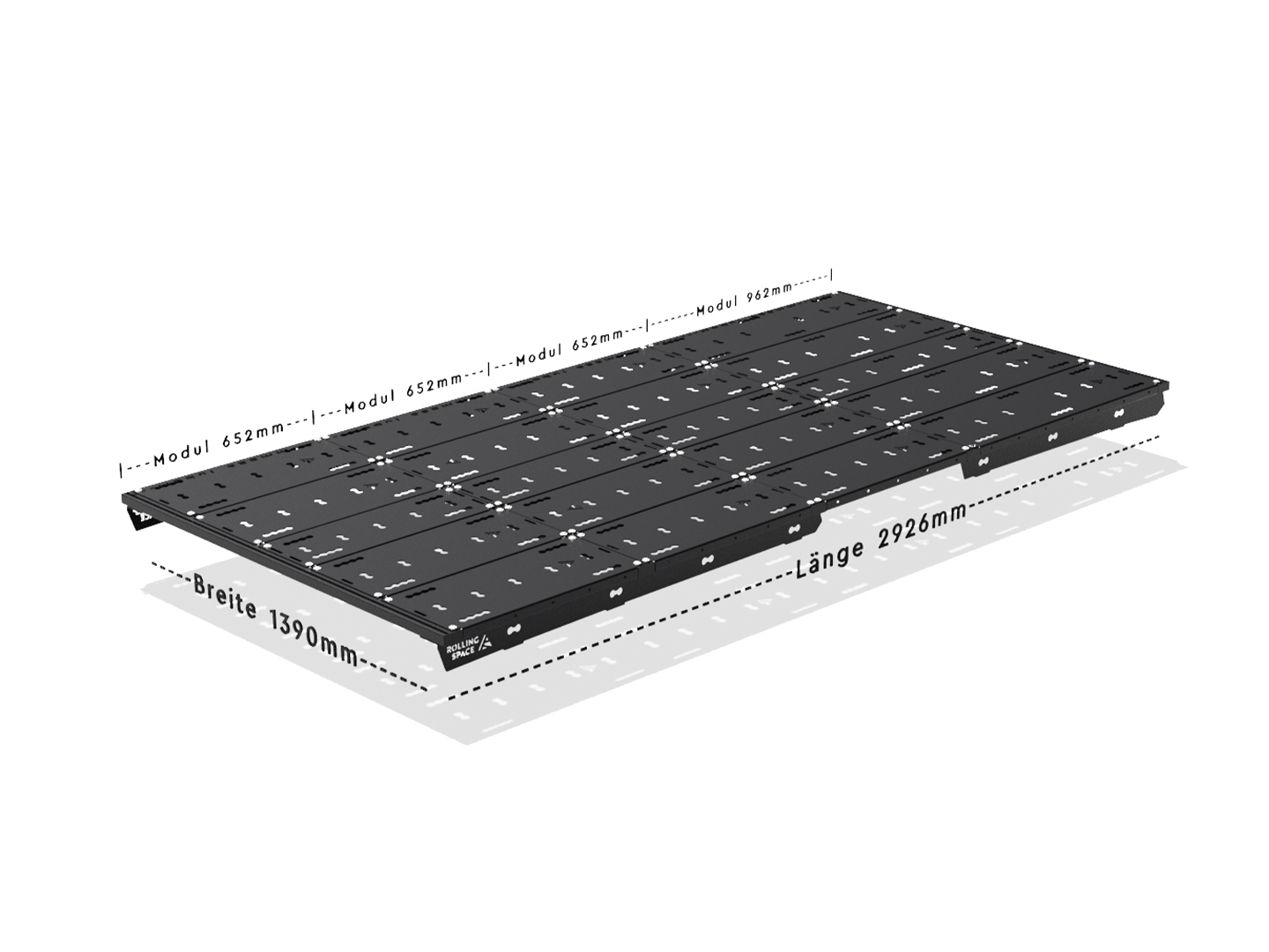 Das SpaceRack ist dafür konzipiert, bis zu 350 kg zu tragen und ist vollständig begehbar. Trotz seiner soliden Konstruktion ist das Gewicht des Systems durch die spezielle Leichtbauweise sehr gering, was die Fahrdynamik positiv beeinflusst.