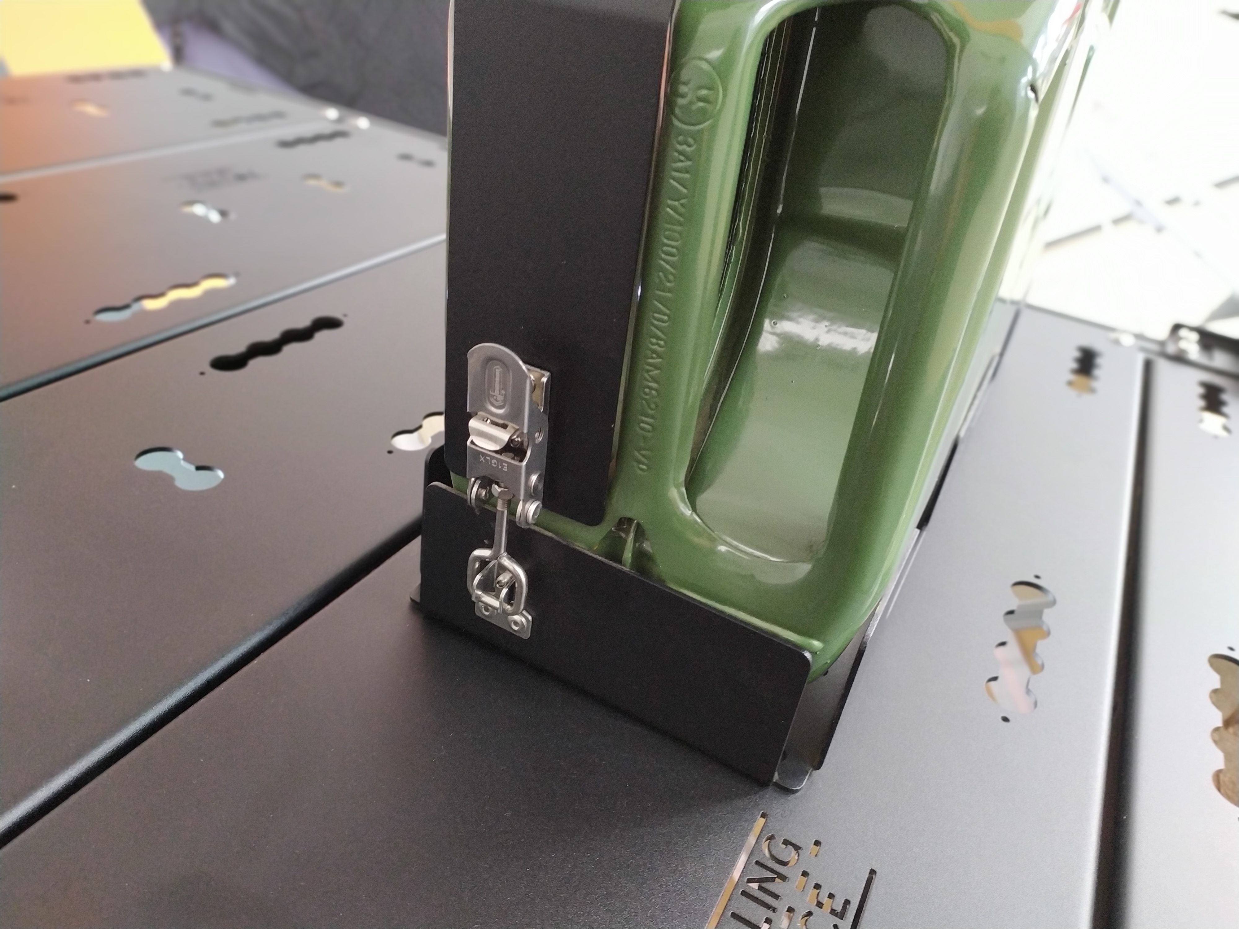 Dieser hochwertige Halter für 20 L Blech Jerry Kanister ist ein Must-have Accessoire für alle Abenteurer.