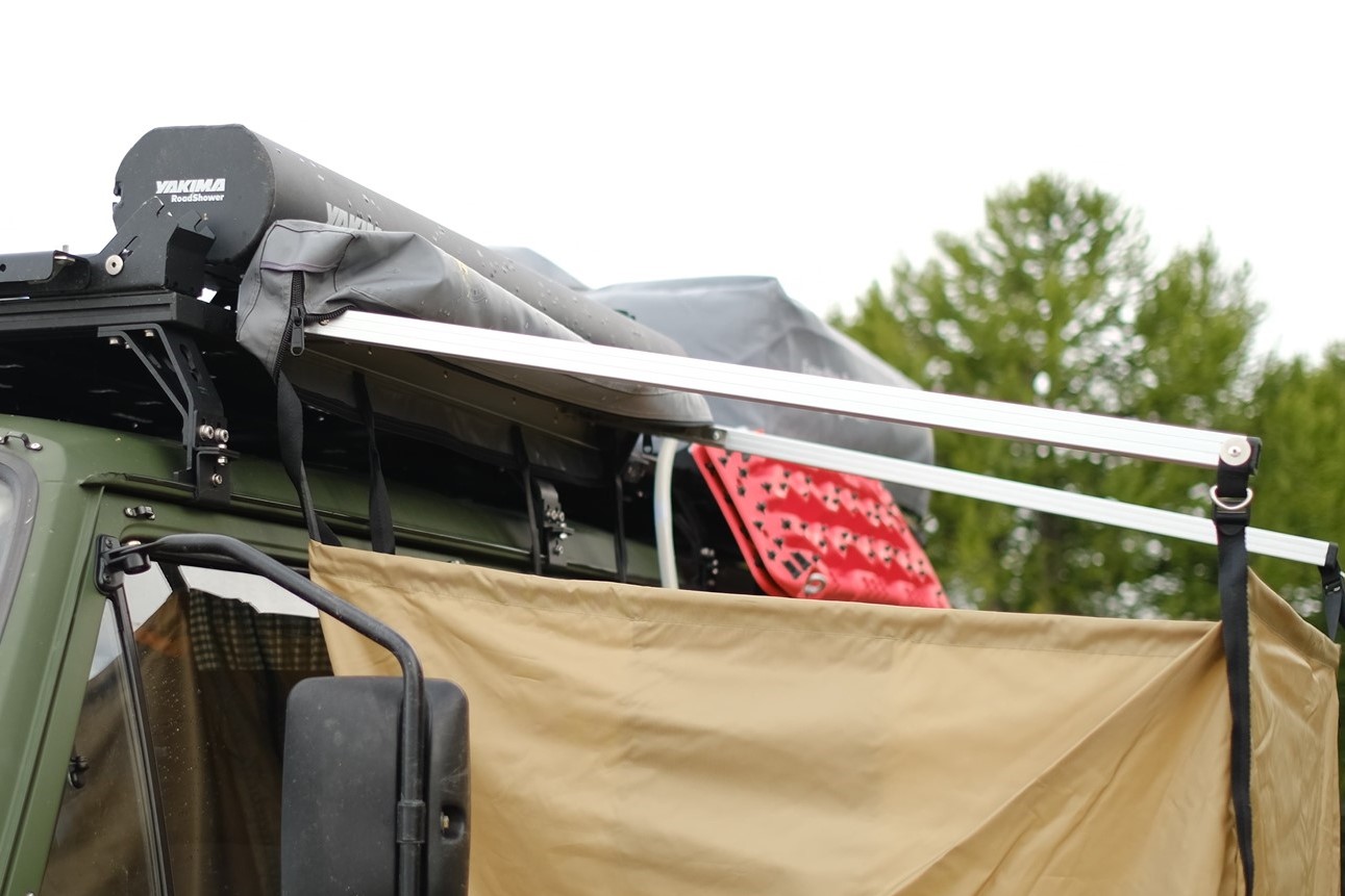 Mit diesem Halter befestigst du das Duschzelt von Vickywood(200049) oder Gordigear(200048) zusammen mit der Roadshower (15&26L) als Paket am SpaceRack.
