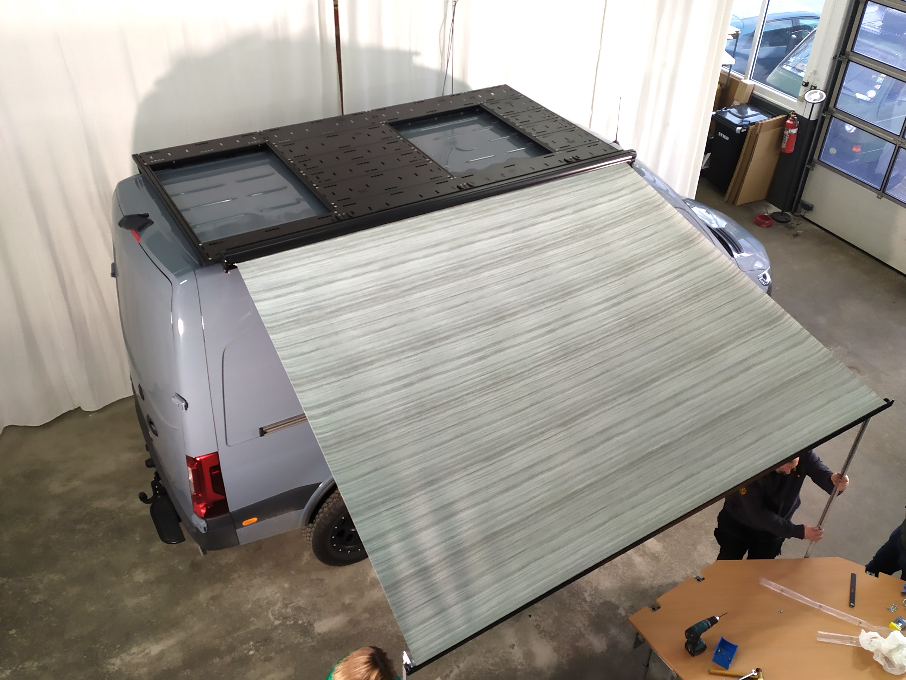Hierzu zählen Markisen wie Fiamma F45 (Wallmount bereits im Lieferumfang), Thule Omnistor, Dometic Perfect Wall.