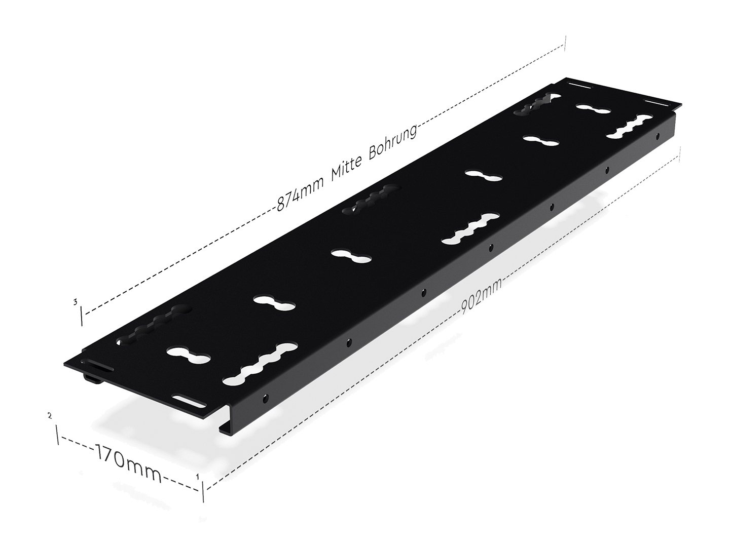 3 Abstand der Befestigungslöcher längs Mitte-Mitte