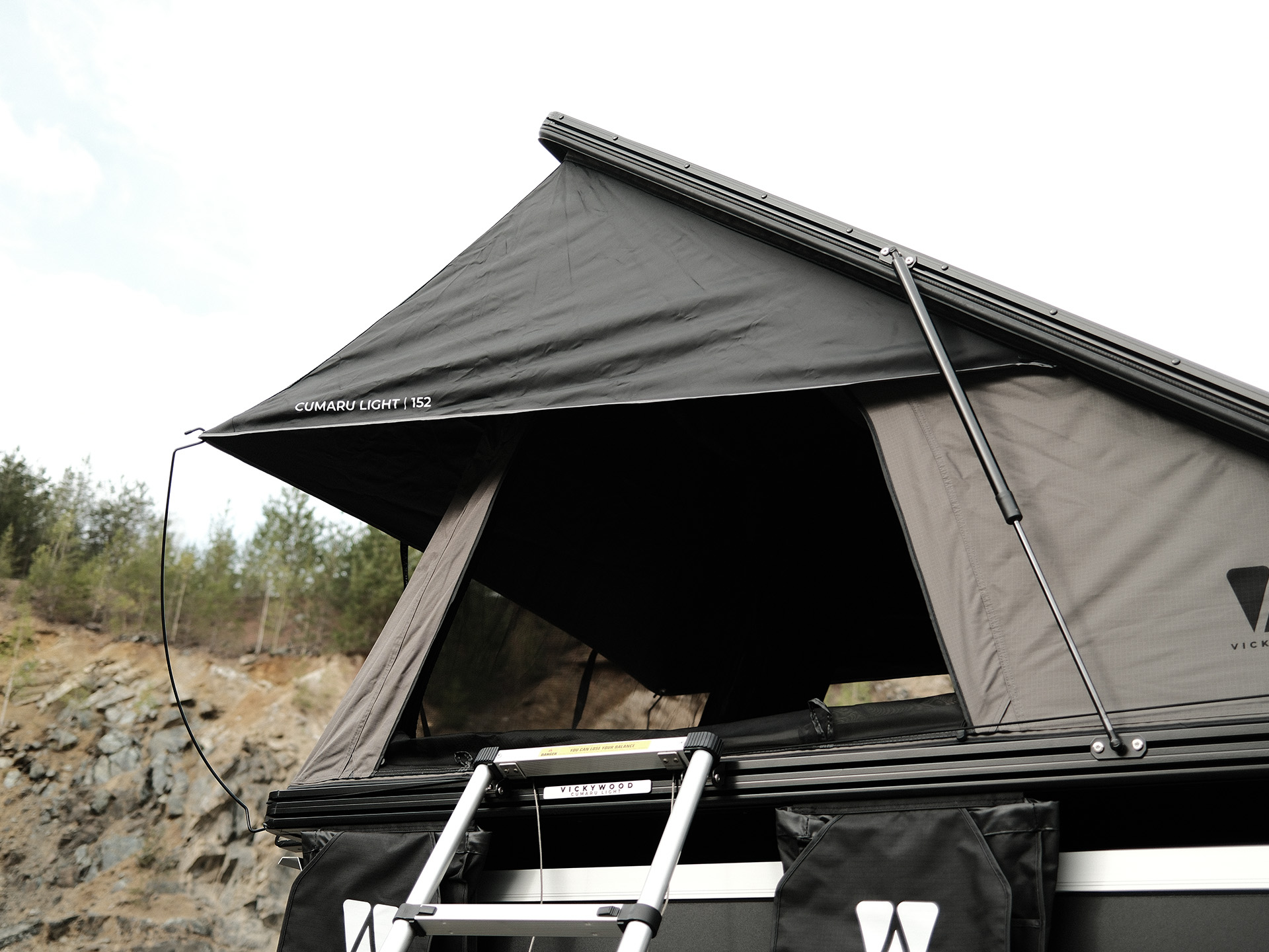 Lieferumfang: 1x Alu-Hartschalen-Dachzelt CUMARU LIGHT 152 ECO inkl. Zubehörtasche (Montagematerial) inkl. Memory Foam Matratze inkl. Teleskopleiter inkl. zwei Schuhtaschen