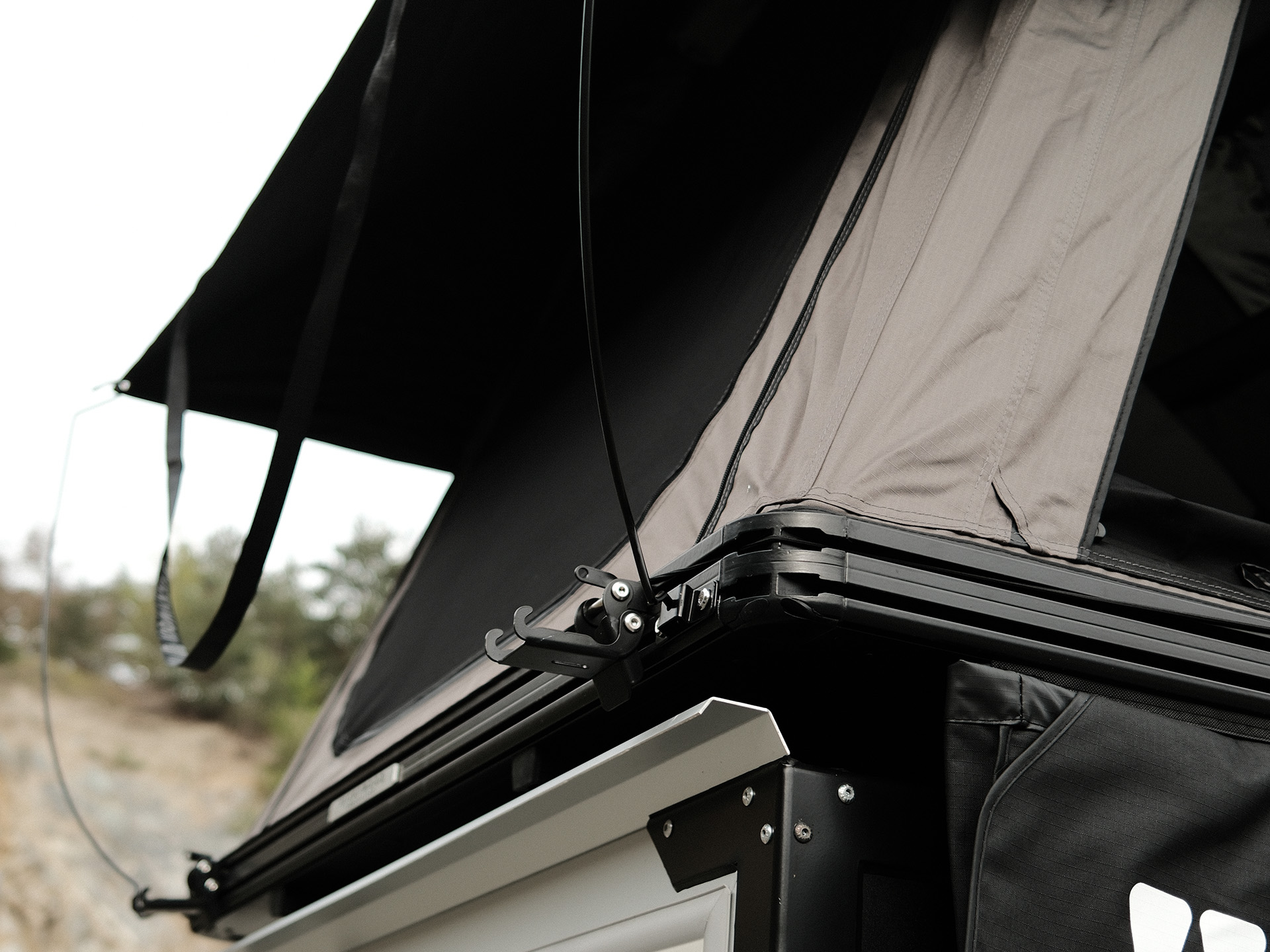 Dank seinem Hochwertigen Dachzelt hast du dein Bett für zwei Personen immer dabei und kannst jederzeit spontan auf Reisen gehen.